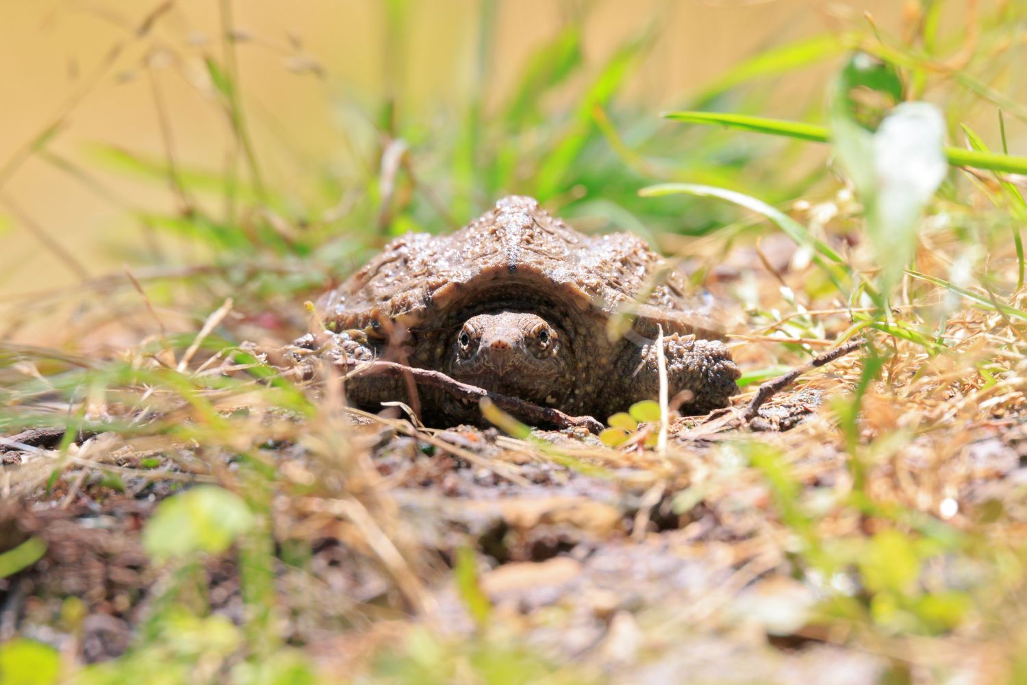 In terms of disposition, alligator snapping turtles are generally docile underwater and will usually remain still or swim away from humans. Unlike the more commonly encountered common snapping turtle (which can be feisty when provoked on land), alligator snappers rarely leave the water except to nest, so encounters with people are infrequent. However, if handled or threatened, their powerful bite can cause serious injury, so they deserve great respect, like every animal, and caution.