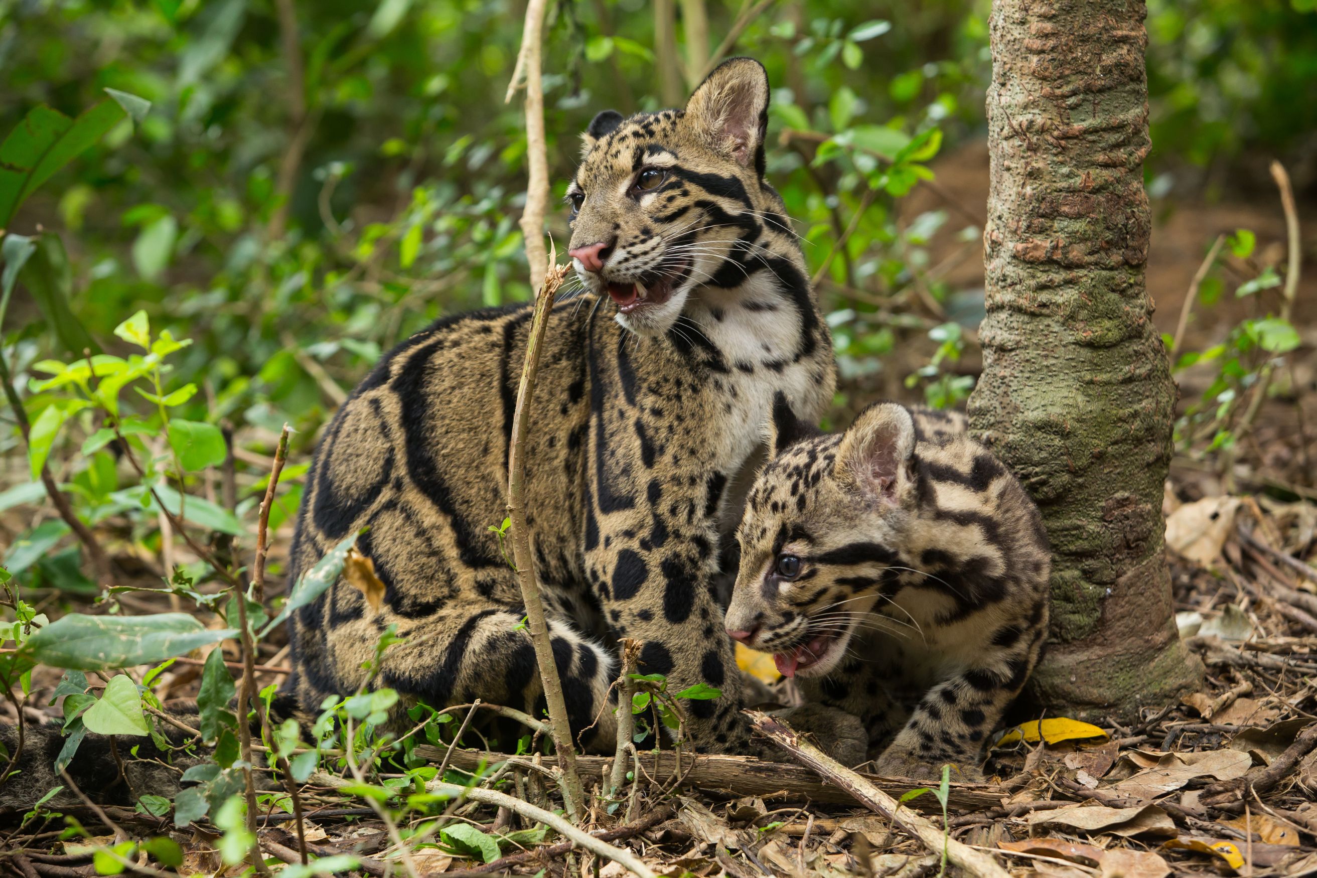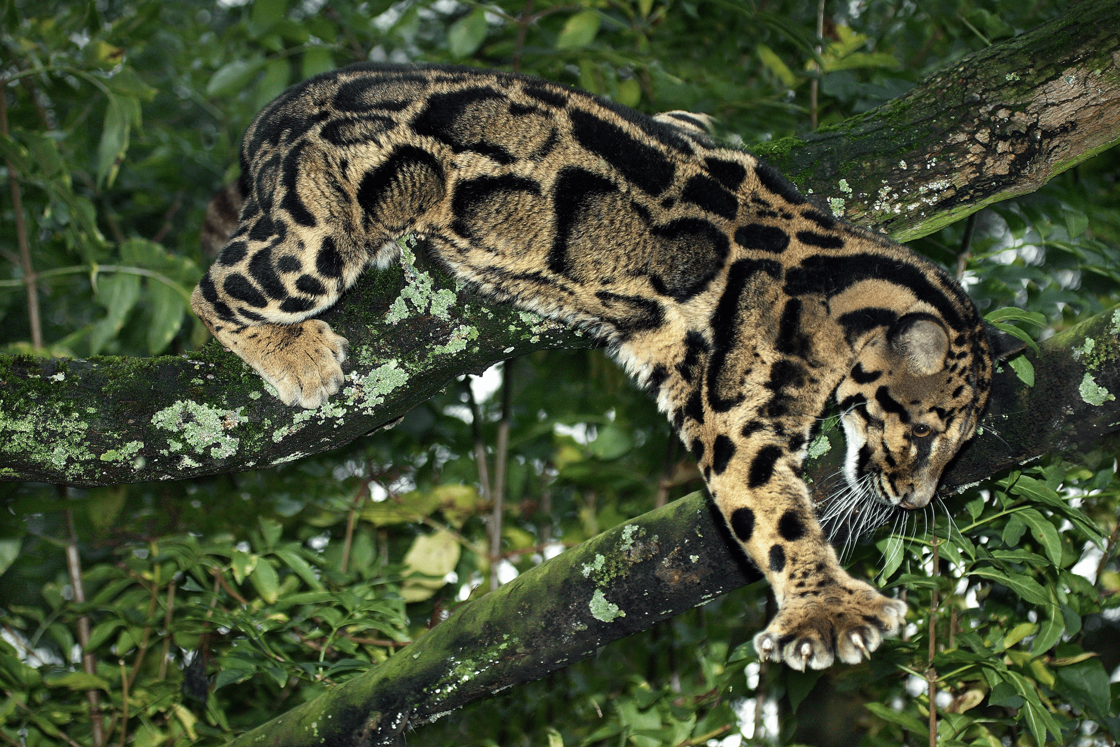 Clouded leopards are found across a broad stretch of South and Southeast Asia, ranging from the foothills of the Himalayas in Nepal and India through southern China, and down through Thailand, Malaysia, and Indonesia. They prefer dense, humid forests, particularly lowland tropical rainforests, though they also live in drier forests and at higher elevations.