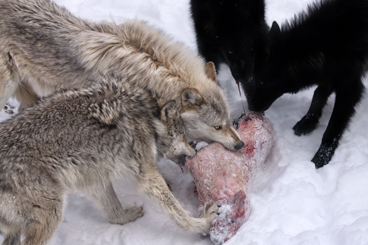 One study showed that packs of four or more wolves gain more food per wolf than smaller packs because they can finish a kill before ravens take too much. In this way, ravens may even influence wolf cooperation.